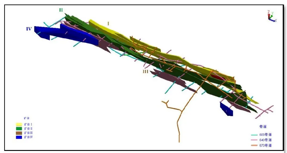 矿权范围内发现了 4 条矿体,其中 I 号矿体控制长度 1060m II 号矿体控制长度约900 米。