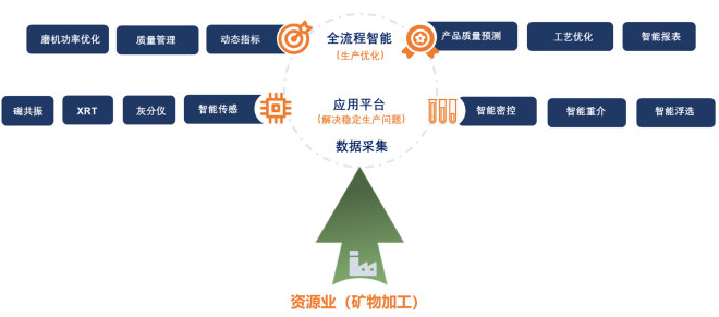 智能密度控制系统为智能重介分选系统的智能神经中枢,它通过入料特性(如浮沉数据、粒度组成等)得到最初的系统预测密度值,在产品皮带之新增溜槽取样装置,新增在线X射线灰分仪(LIPS激光诱导元素仪-非煤矿山), 将灰分仪(元素仪)的数据采集至主洗系统的PLC,密度计、分流阀、液位计也进入PLC,在可编程程序控制器(PLC)中编写程序,实现基本逻辑控制,生产服务器采集各个环节的生产数据,进行大数据分析,利用基于系统动力学的动态控制系统、专家控制系统、反馈控制系统和人工智能算法,输出悬浮液的密度和悬浮液桶位的指导数据,再反馈给PLC,对合介桶内悬浮 液的密度、悬浮液桶的液位等进行自动调节。该过程减少了人为干预因素,实现了以产品杂质量(如:精煤灰分)为最终控制目标的智能密度控制系统。