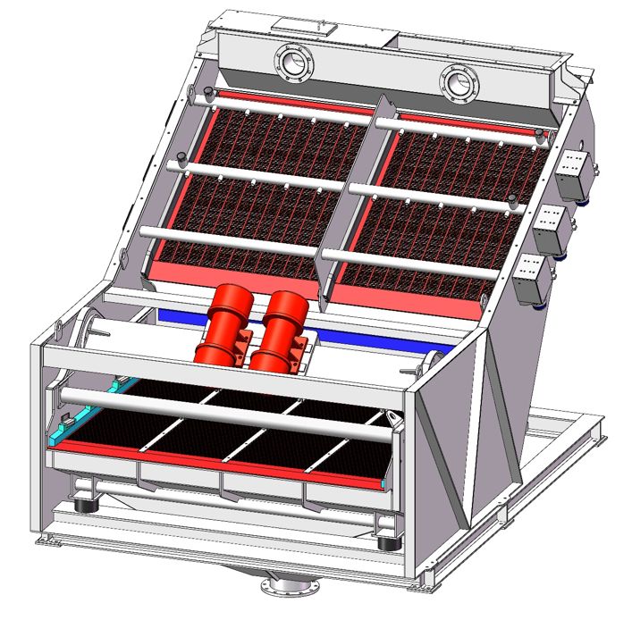 三质体高频复合脱水筛适用于后续无进一步脱水设备的粗煤泥工况,如 TBS 尾矿、螺旋尾矿、块煤脱泥筛筛下水等环节的脱水。