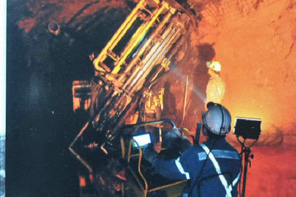 钻爆过程是一个危险的过程,所以阿尔法将无线遥控系统应用于凿岩台车。无线遥控凿岩台车既可以工作在视距范围内操作,也可以在远程超视距范围下操作。在视距遥控模式下,操作人员携带轻便的遥控操作单元,距离台车100m范围内,通过眼睛观察周围状况,遥控操作凿岩台车,实现安全、高效地凿岩作业。
